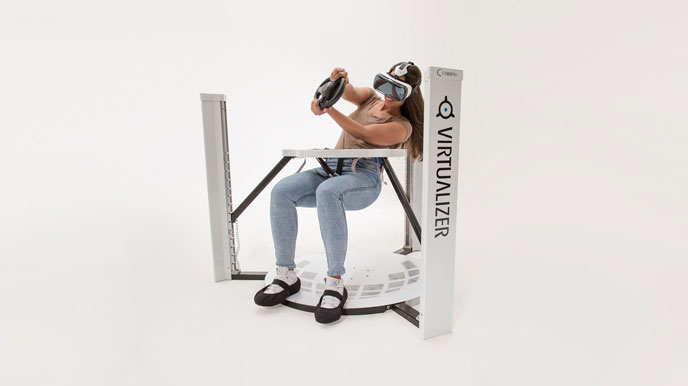 In my opinion, Cyberith is a company that sees the world differently from the others. They though: “What about the freedom of movement in EVERY VR headset out there?” The solution is clear; a physical platform that allows the user to move freely and naturally! The Virtualizer’s flat base plate has a low-friction surface that enables you to walk, run, and strafe freely in every direction. As it’s flat, movement feels realistic, dramatically enhancing immersion. The uniquely constructed ring allows for vertical movements such as jumping and crouching, as well as a 360° axial rotation. The adjustable harness ensures that movement through virtual worlds is effortless…you can even sit down! The Virtualizer is made of steel and aluminum. This means that you not only can expect great strength, but also excellent build quality. The robust construction provides great stability and as a result, safety. It can be dismantled quickly and easily, making it easy to store. The Virtualizer is produced and assembled in Europe. Furthermore, it’s USB-Plug & Play and fully compatible with all software that allows controller or keyboard input.