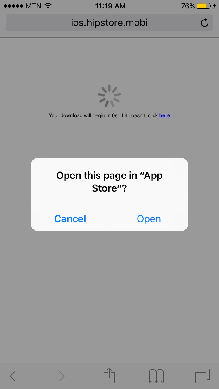 Step 4 : Wait for about 5 seconds to see the popup that will prompt you to open it to the App Store. Then click open.